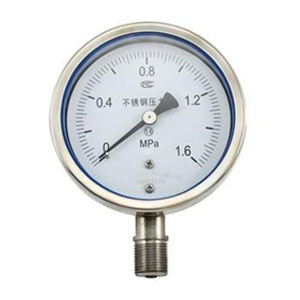 YBF系列不銹鋼壓力表  YBF不銹鋼壓力表YBFN不銹鋼耐振壓力表                     該系列壓力表的零件采用耐腐蝕的不銹鋼及耐腐蝕的合金材料制成,使儀表具有良好的耐腐蝕性能,可廣泛應用于石油、化工、冶金、礦山、機械、電力及食品行業。直接測量不結晶體,但有腐蝕性的氣體、液體的壓力。  ◆主要技術指標 w 公稱直徑:&Phi;60  &Phi;100  &Phi;150 w 結構形式:徑向直接安裝式         w 接頭螺紋:M20x1.5 w 準確度等級:1.5  2.5 w 測量范圍:與一般壓力表的測量范圍相同 w 環境條件:溫度-40-70℃  相對濕度&le;85﹪ w 耐振等級:YBF為V.H.3   YBFN為V.H.4 w 材料:0Cr18Ni9Ti、1Cr18Ni9Ti、316等 ◆型號規格   名稱型號公稱直徑測量范圍(MPa)接頭螺紋精度等級耐振等級不銹鋼壓力表YBF60100150 -0.1~0;-0.1~0.15;-0.1~2.4; 0~0.1;0~60;M20&times;1.51.5;2.5V.H.3不銹鋼耐振壓力表YBFN60100150 -0.1~0;-0.1~0.15;-0.1~2.4; 0~0.1;0~60;M20&times;1.51.5;2.5V.H.4