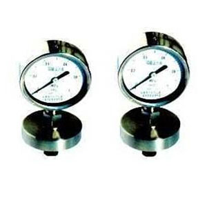 原理:膜片式壓力表是膜片作為儀表的強性元件,當(dāng)被測介質(zhì)的壓力作用到膜片上,膜片產(chǎn)生一個位移,再經(jīng)過機芯部件,指針部件的工作,使要測的  壓力清楚地在刻度盤上指示出來。